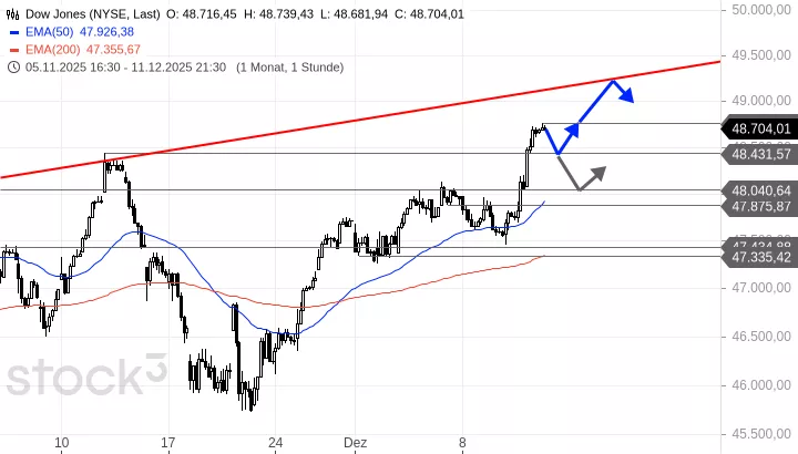 Der Dow Jones lieferte am Donnerstag ein Kursfeuerwerk und schoss über den Widerstand bei 48.432 Punkten hinaus auf ein neues Allzeithoch.