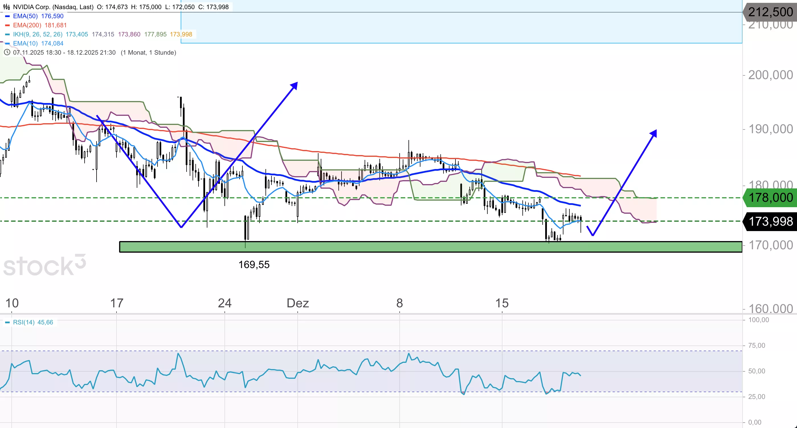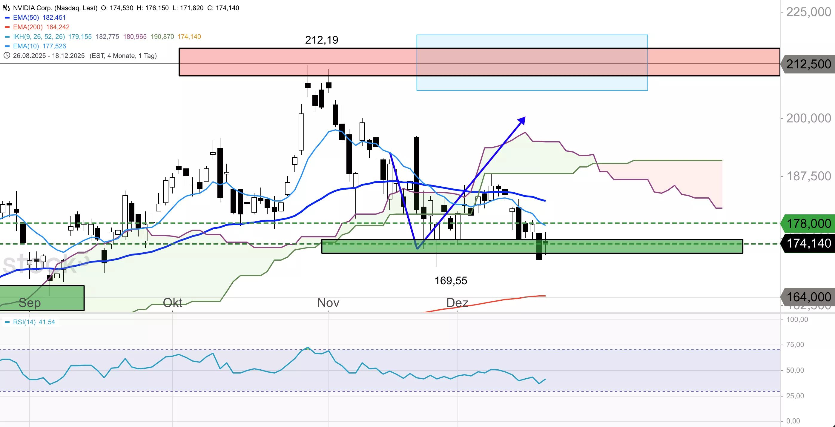 175,00 + 178,00 + 182,50Unterstützungen (Intraday):