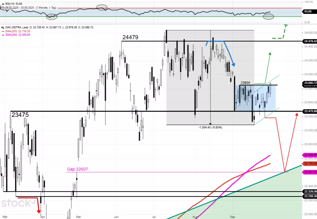 Bei 23.850 + 23.875 + 23.915 + 23.975 + 24.000 Punkten.Und wo liegen die Unterstützungen?