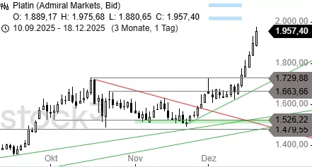 Der Schlussspurt bei Palladium hat im Bereich von 1.665 USD ein kleines Kursziel, an dem eine Pause folgen kann. Das große Ziel der Rally ist aber der Widerstand aus dem Jahr 2022 bei 1.772 USD. Hier wäre eine größere Korrektur zu erwarten. Oberhalb von 1.800 USD könnte der Palladiumkurs später sogar bis 1.850 USD und 1.905 USD steigen. Aktuell würden erst Kurse unter 1.531 USD den Bullen etwas den Wind aus den Segeln nehmen. Dennoch könnte ausgehend von 1.475 USD ein zweiter Rallyschub bis 1.772 USD und darüber folgen.