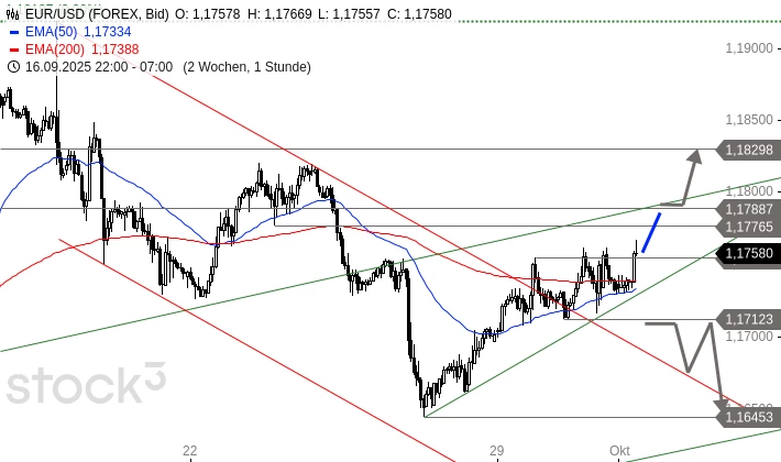 Damit deutet sich ein weiterer Anstieg bis in den Widerstandsbereich um 1,1777 bis 1,1789 USD an. Ein Ausbruch über diesen Bereich würde weitere Gewinne in Richtung 1,1830 implizieren. Sollte EUR/USD aber unter das Tief von gestern Nacht bei 1,1712 USD abfallen, würden weitere Abgaben in Richtung 1,1645 USD drohen.