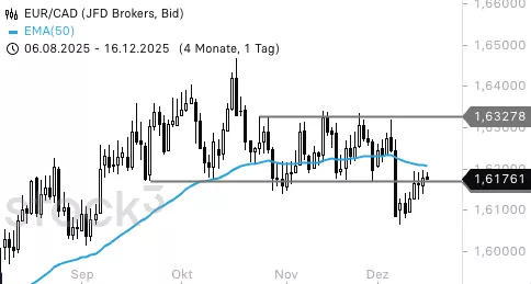 Der Euro ist seit geraumer Zeit zwar beliebter als der US-Dollar, kann aber nicht überall punkten. So kam es in den vergangenen Tagen bei EUR/CAD zu einem kurzfristig bärischen Ausbruch unter 1,61693 CAD. Dieser Ausbruch wurde bereits durch einen Pullback bestätigt. Die damit verbundene Erholung könnte jetzt beendet werden. Ein Angriff der Verkäufer ist wahrscheinlich und setzen sich diese durch, drohen neue Tiefs unterhalb von 1,60650 CAD.