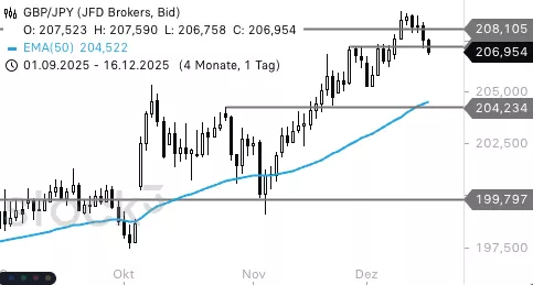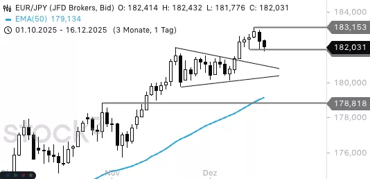 Beeindruckend stark war der Euro in den vergangenen Monaten auch gegenüber dem Japanischen Yen. Wie an der Schnur gezogen etablierten die Käufer einen Aufwärtstrend mit einem jüngsten Hoch bei 183,153 JPY, das erst Ende der letzten Woche erreicht wurde. Die dort einsetzende Konsolidierung sorgte zwar kurzfristig für einen kleinen Stimmungswechsel, trifft jedoch bei 181,873 JPY und ca. 181,540 JPY auf wichtige Unterstützungen.
