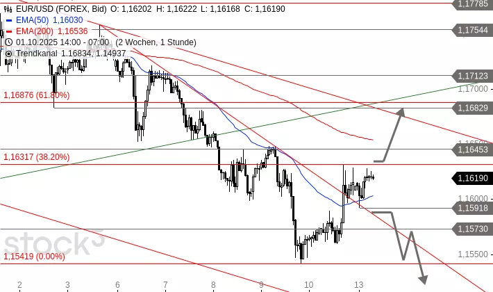 Ein Ausbruch über 1,1632 USD würde EUR/USD die Chance auf eine weitere Erholung in Richtung 1,1688 USD eröffnen. Damit würde EUR/USD an das kurzfristige log. 61,8%-Retracement ansteigen und an den gebrochenen Aufwärtstrend seit Februar 2025 zurückkehren. Sollte EUR /USD aber unter das Tief von heute Nacht bei 1,1592 USD abfallen, dann müsste mit weiteren Abgaben bis 1,1542 USD und 1,1454 USD gerechnet werden.
